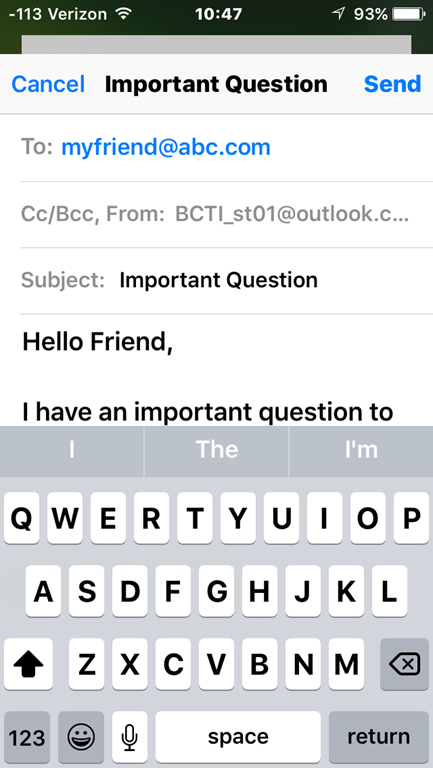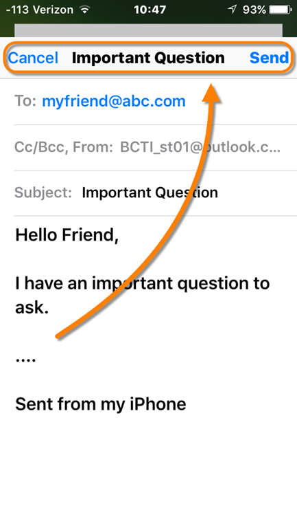 2) Tap and swipe downward on the top of the message where “Cancel” – Subject – “Send” is displayed.