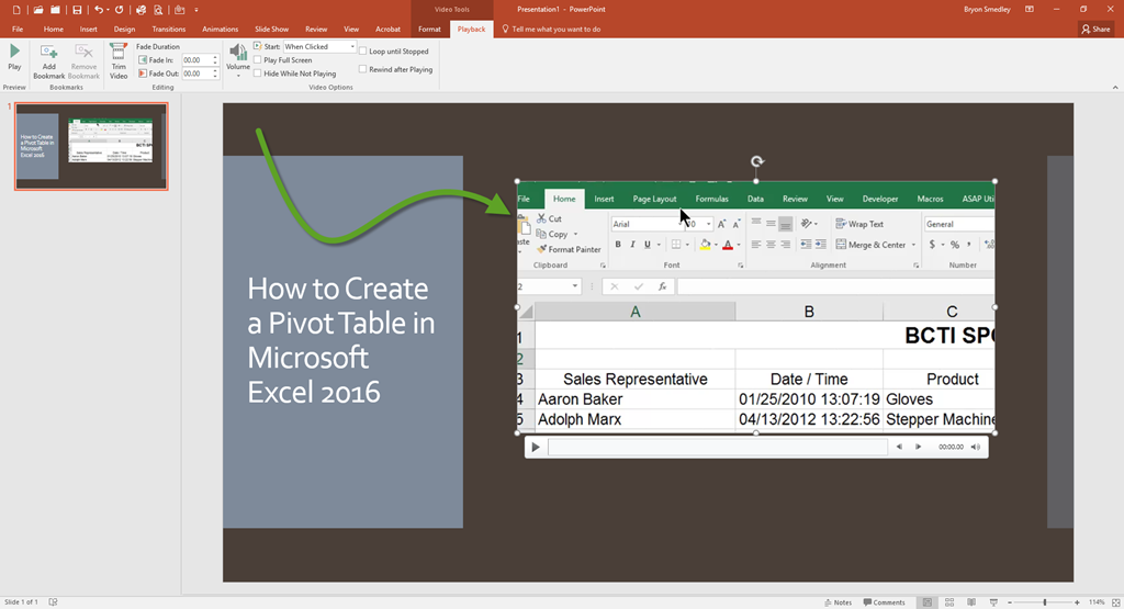 From here, you can utilize all of the standard video editing and video enhancement tools that are standard with PowerPoint, such as: