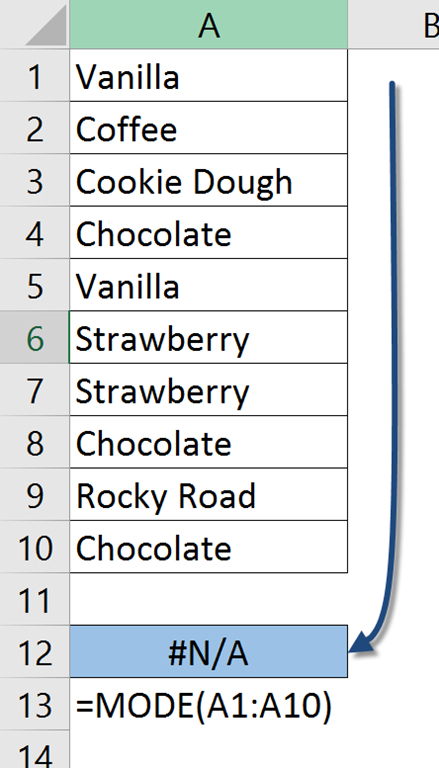 As you can see, the MODE function does not work very well when pointing to a list of words.