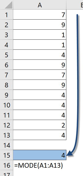 Using the MODE function in Excel is quite simple; you point to a list of numbers and MODE will tell you which number occurs the most often.