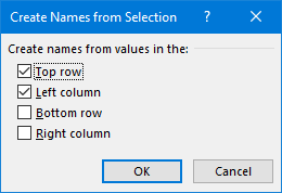 Make sure that “Top row” and “Left column” are selected and click OK.