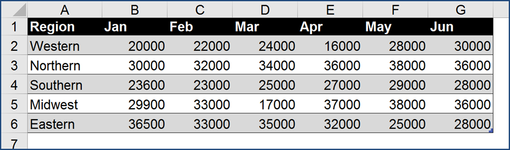It’s just like asking Google Maps, “What’s at the intersection of 4th Avenue and Main Street?”, and it came back saying “Starbuck’s”. In this case, we are asking Excel, “What is at the intersection of Column D and Row 4?” The answer is 25000.