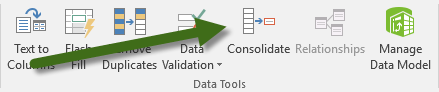 With your cursor resting on the sheet that will contain the consolidated data (most likely a new empty sheet), select Data (Ribbon) –> Data Tools (Group) –> Consolidate.