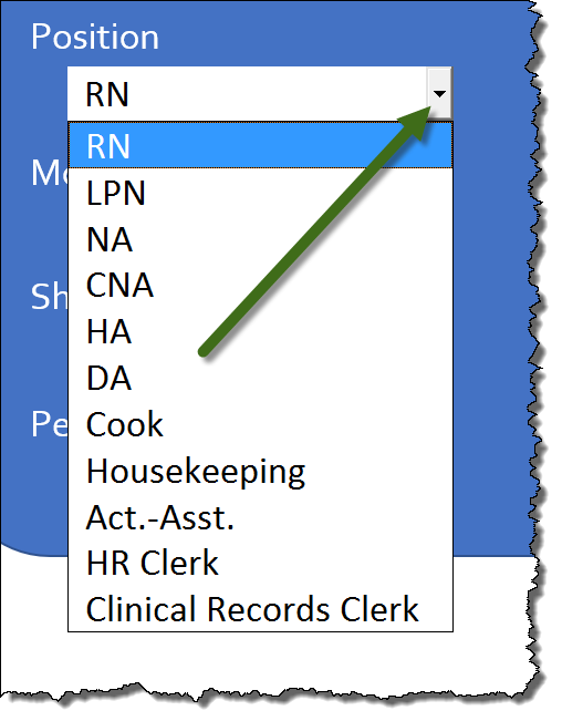 A dropdown arrow will appear allowing for list entries to be selected.
