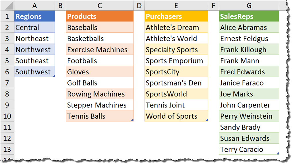 Repeat this process for each list on the sheet.