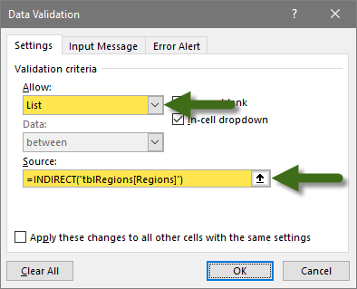 =INDIRECT(“tblRegions[Regions]”)