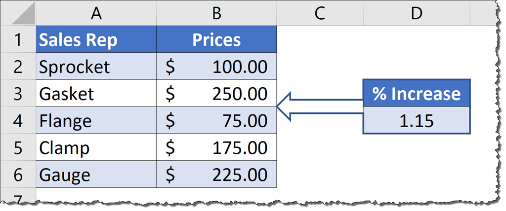 In this scenario, we want to increase a list of item’s sale prices by 15%.