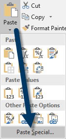 Select the first cell holding the “current sales” (B2) and select the lower part of the Paste button and select Paste Special…