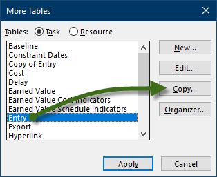 button, but it is usually easier and faster to copy an existing table and modify the copy. In this example, a copy of the “Entry” table will be copied and modified to display the date information.