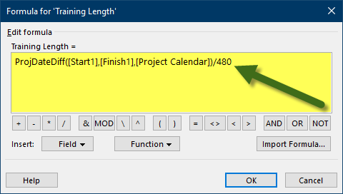 ProjDateDiff([Start1],[Finish1],[Project Calendar])/480